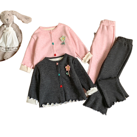 Nuovo cardigan in cashmere pantaloni con fondo a campana autunno e inverno set di due pezzi alla moda da ragazza in velluto bellissimo set di fiori stampati